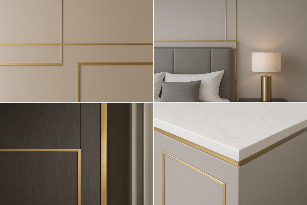 Metal trims for wall panels, wood veneer panels and WPC cladding, including edge, corner and joint covers.