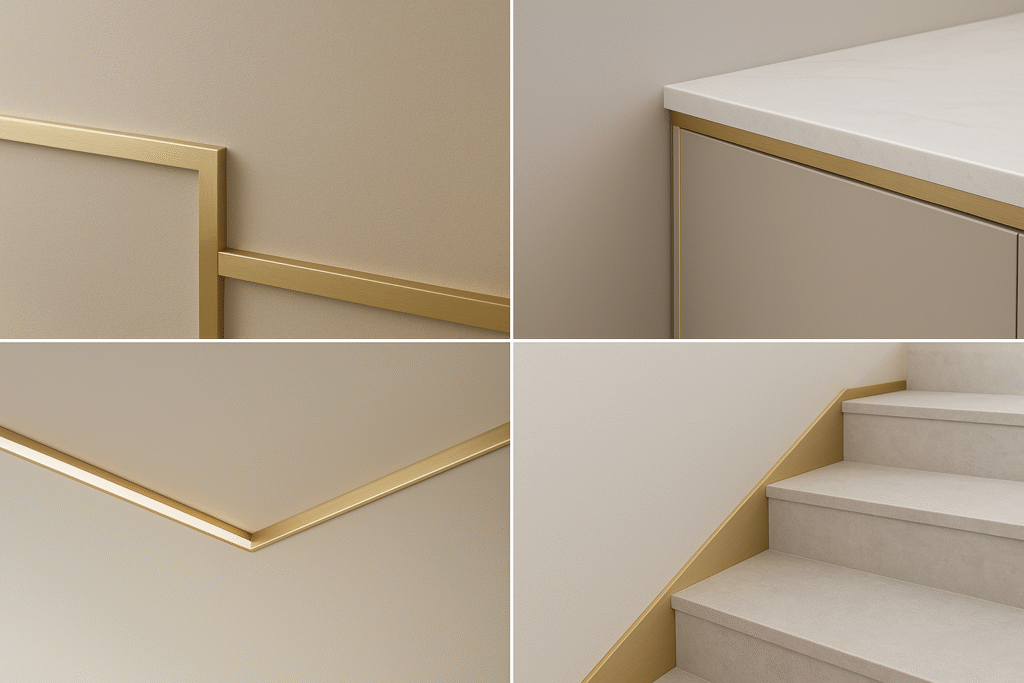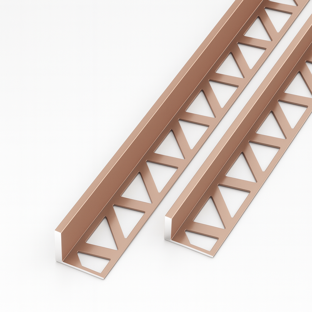 Tile edge trim, corner trim, and decorative finishing strips for ceramic and porcelain tiles.