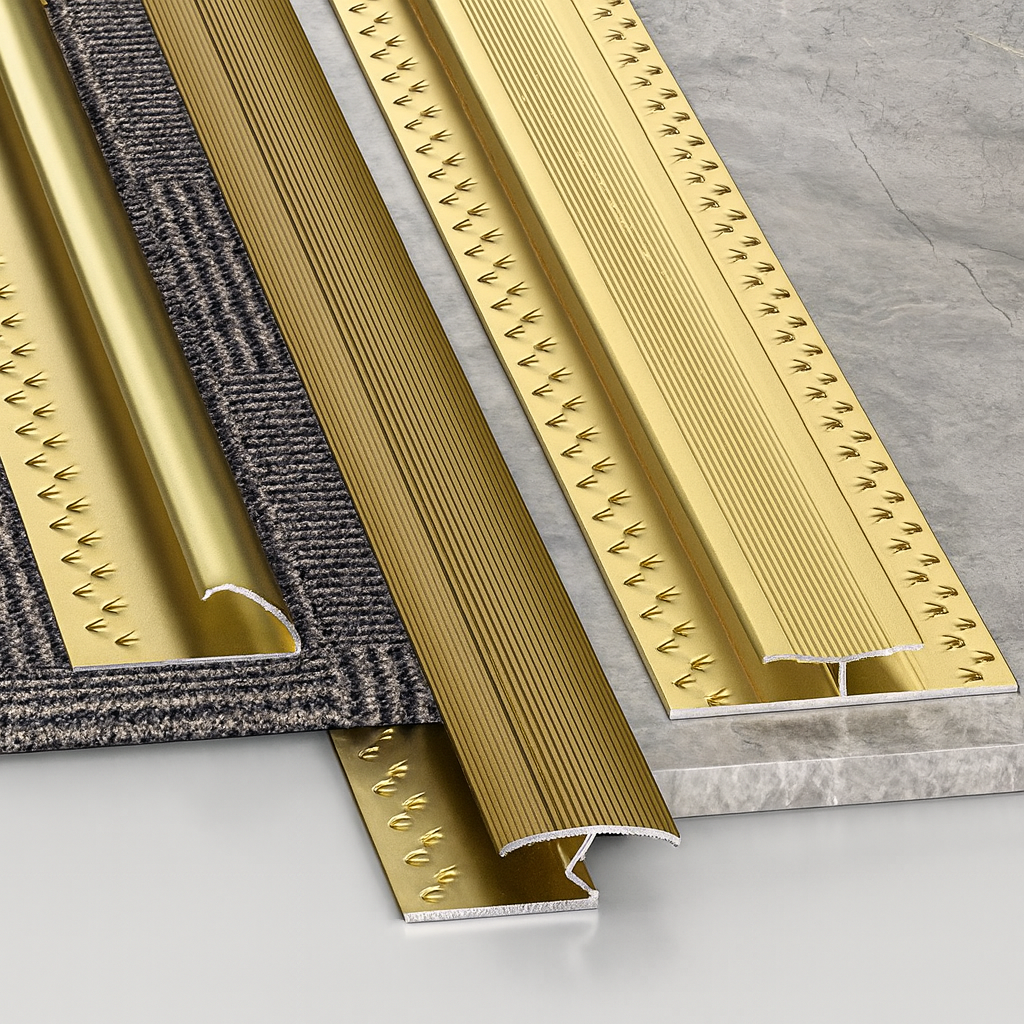 Transition profiles for different floor heights and materials, creating safe and seamless connections.