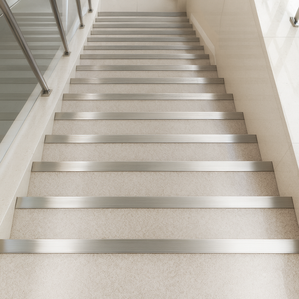 Anti-slip stair nosing for step edge protection and safety in high-traffic areas.